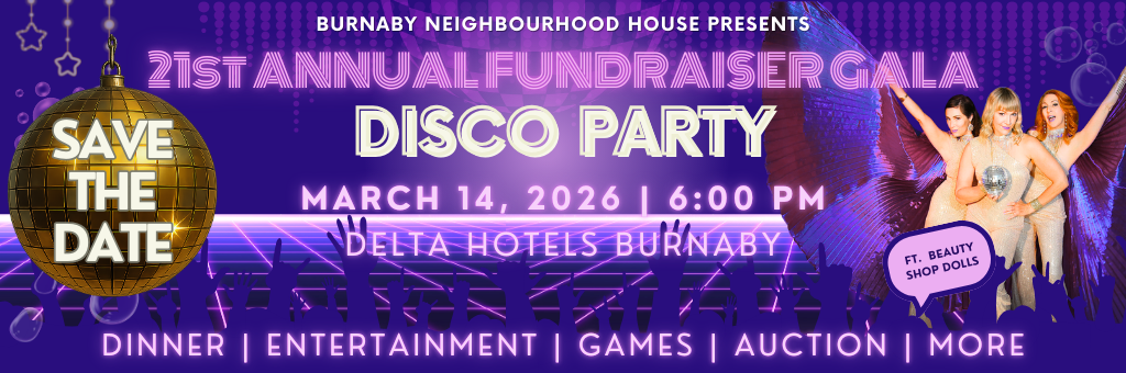 Your support of Burnaby Neighbourhood House at the 20th Annual Fundraiser Gala helped raise over $90,000 which will directly support over 20,000 individuals from Burnaby, and enable us to be responsive to the community’s needs with programs and services.