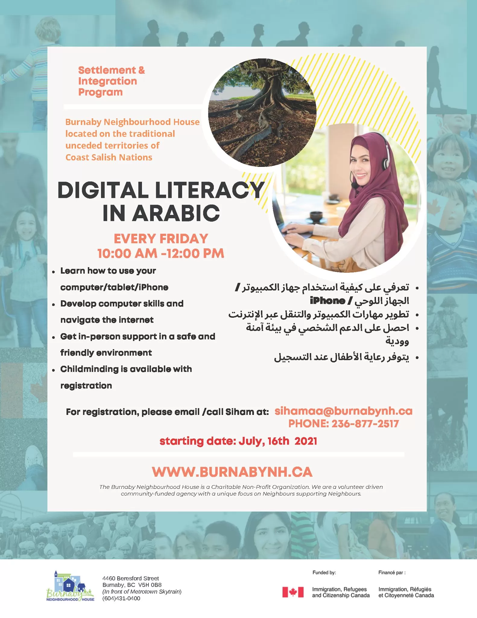 Calling all Arabic speakers in Burnaby to learn and develop their digital literacy skills this summer!