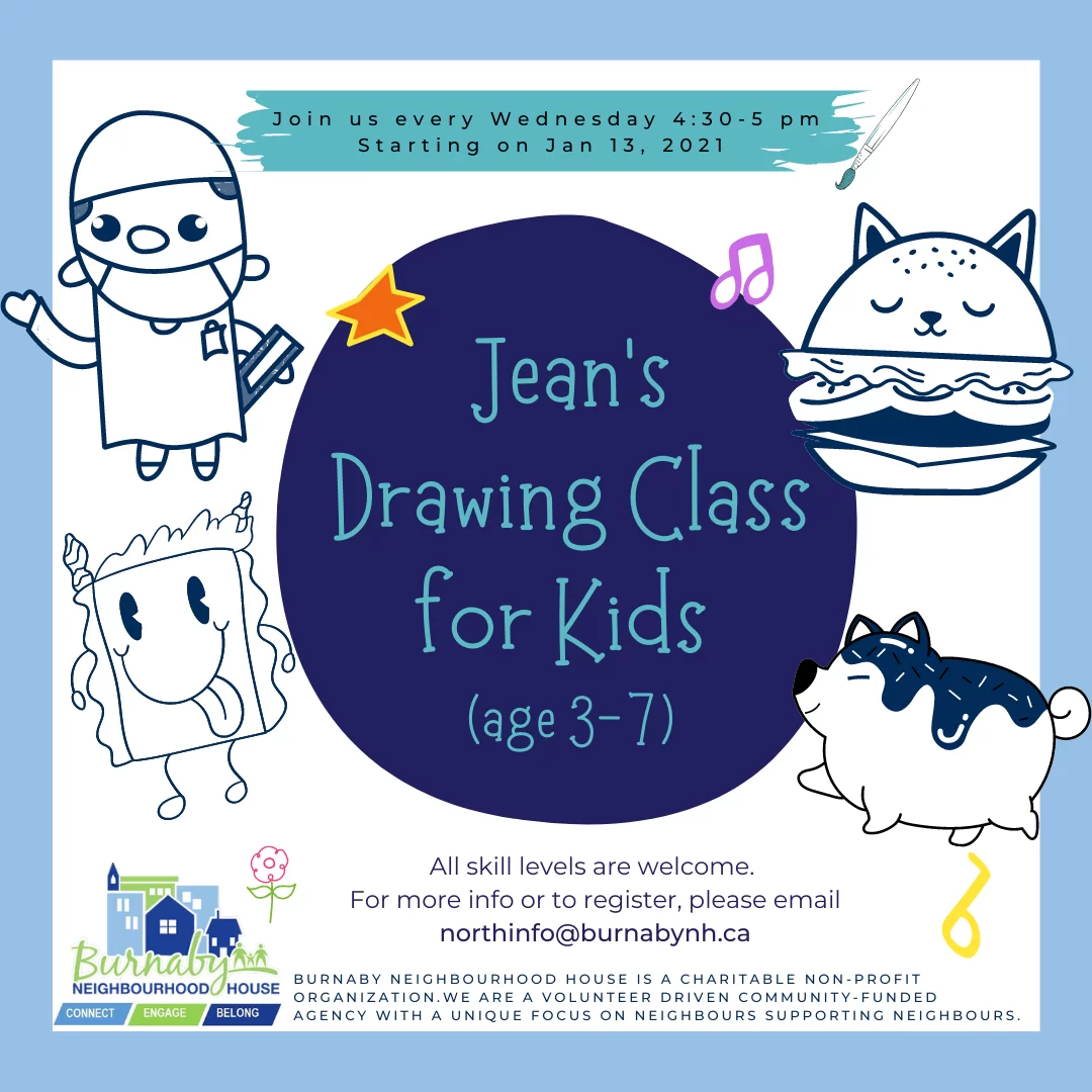 Does your child like to draw? Nurture their creativity through our free Virtual Drawing Class for Kids. Give your child a fun and interactive group experience, led by our lovely and skillful art instructor, Jean, and all from the comfort of your own home!