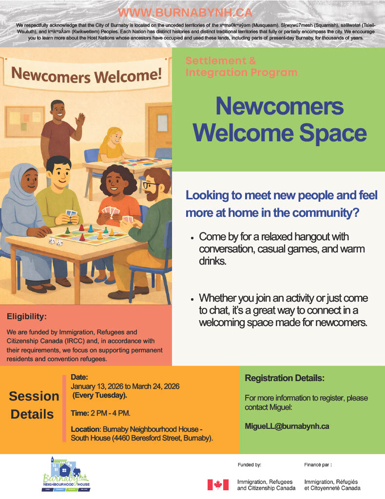 See attached poster for details. For more information, please contact Miguel: MigueLL@burnabynh.ca.